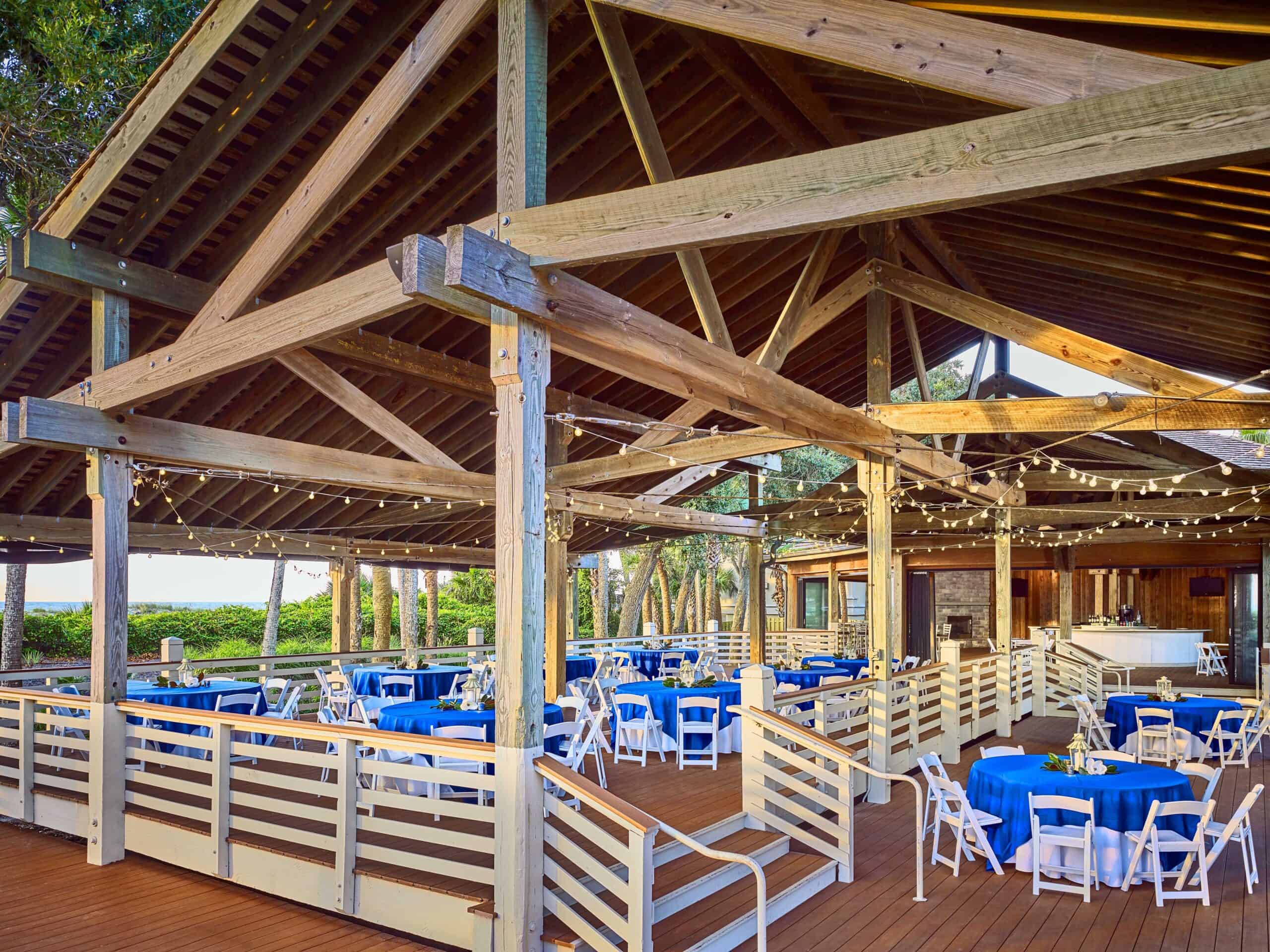 A stunning venue nestled between lush grounds and the pristine South Carolina coastline, the Oceanfront Beach Pavilion offers a versatile space with breathtaking views and unique features, including a beach access point, and oyster roast deck.